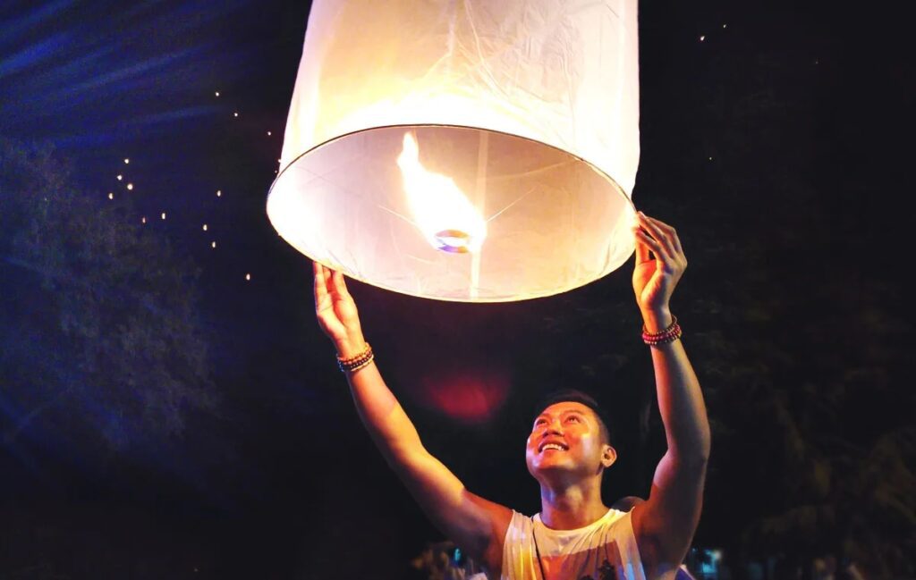As we turned from the river, a warm glow began to rise above the city. The Yi Peng lanterns were beginning to take flight. One by one, the sky filled with thousands of paper lanterns, each carrying someone’s wish into the heavens.