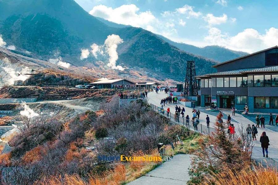 Located in the Hakone region, Owakudani is an active volcanic valley with steaming vents, bubbling sulfur springs, and dramatic mountain views. Created from the last eruption of Mount Hakone 3,000 years ago, it feels like stepping into another planet. The air smells of sulfur, and the ground constantly steams beneath your feet. One of the highlights is trying the famous kuro-tamago — black eggs boiled in the sulfuric waters, believed to extend your life by seven years. The Hakone Ropeway offers stunning panoramic views of the area and Mount Fuji on clear days. It’s an unforgettable natural experience.
